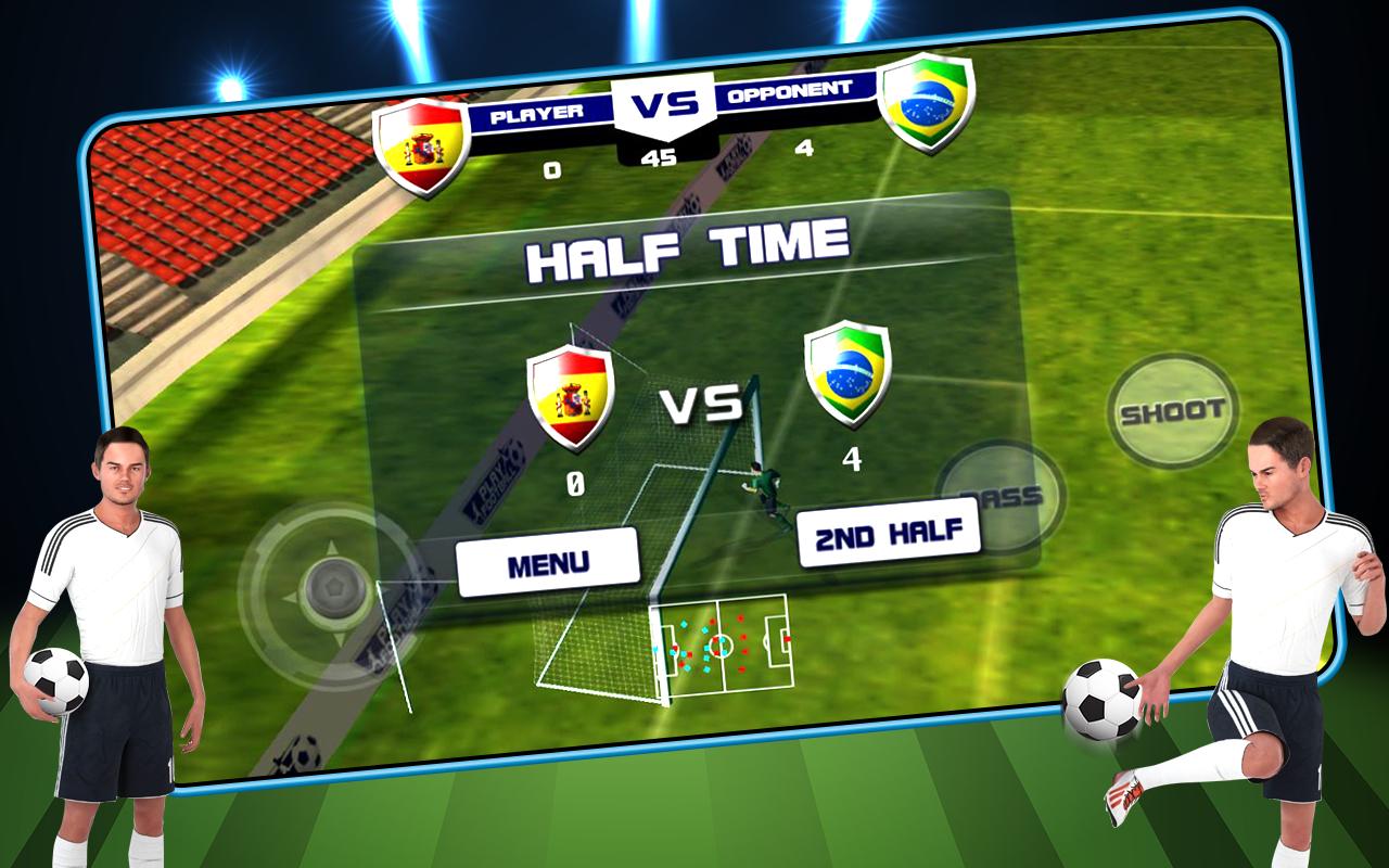 play soccer tournament es un verdadero juego de fútbol competitivo en 3D. Incluye los equipos y los últimos datos de jugadores de fútbol de la Copa Mundial 2014. Hay varios modos para que seleccione, como CUP, Liga Match y Friendly Match. Tiene hasta 126 equipos y 2600 jugadores. Las acciones suaves y la función de reproducción te permiten sentir que realmente estás en el juego.
