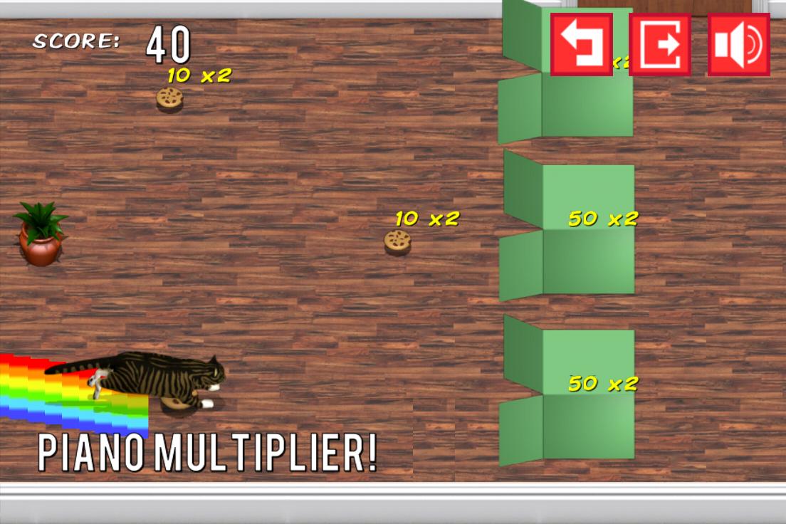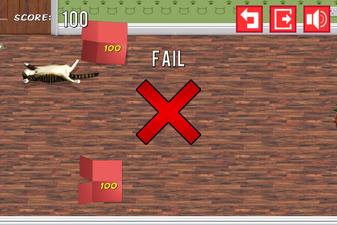 ¡Lanza el gato a la caja! Coma las galletas y los cheiceburgers, apunte a las bonificaciones, evite los obstáculos y busque el puntaje más grande en cada habitación.