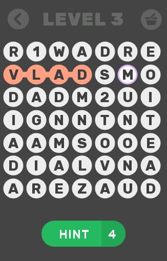Un juego "Encuentra la palabra" donde los nombres de los famosos YouTubers como Selly, Vlad Munteanu o Dorian Popa están ocultos.