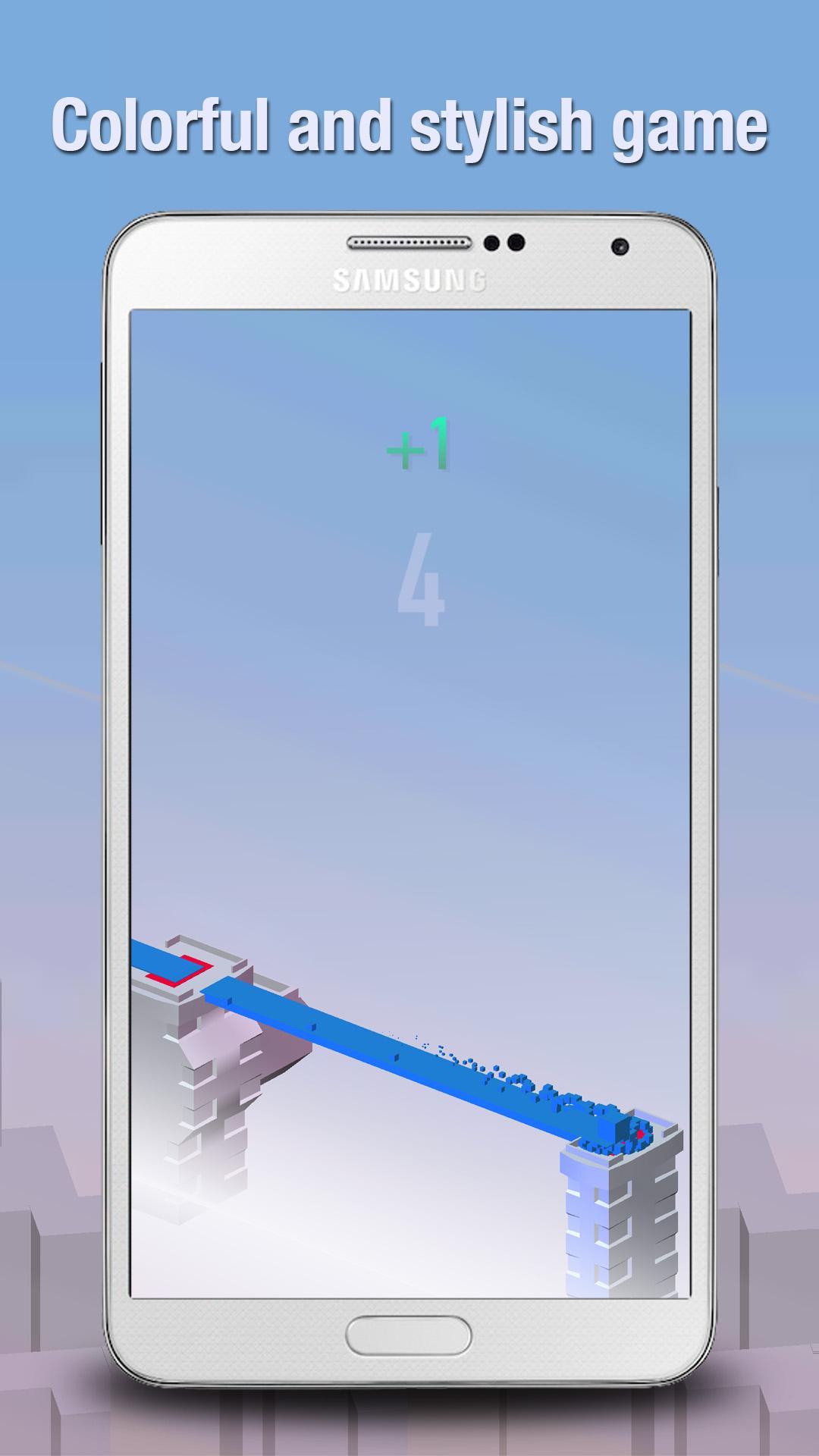 Mantenga su dedo en la pantalla para comenzar el puente de construcción. Tan pronto como lo lance, se colocará el puente. Pierde si su puente es demasiado pequeño o demasiado grande. Desafíe a sus amigos a ser una estrella superior.