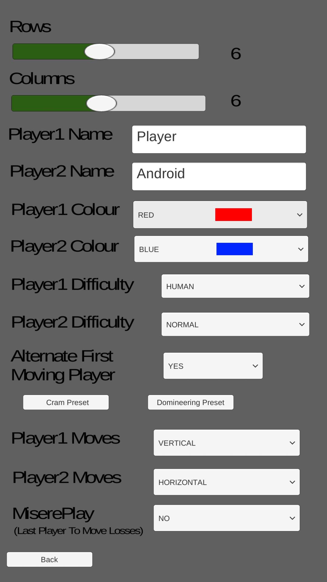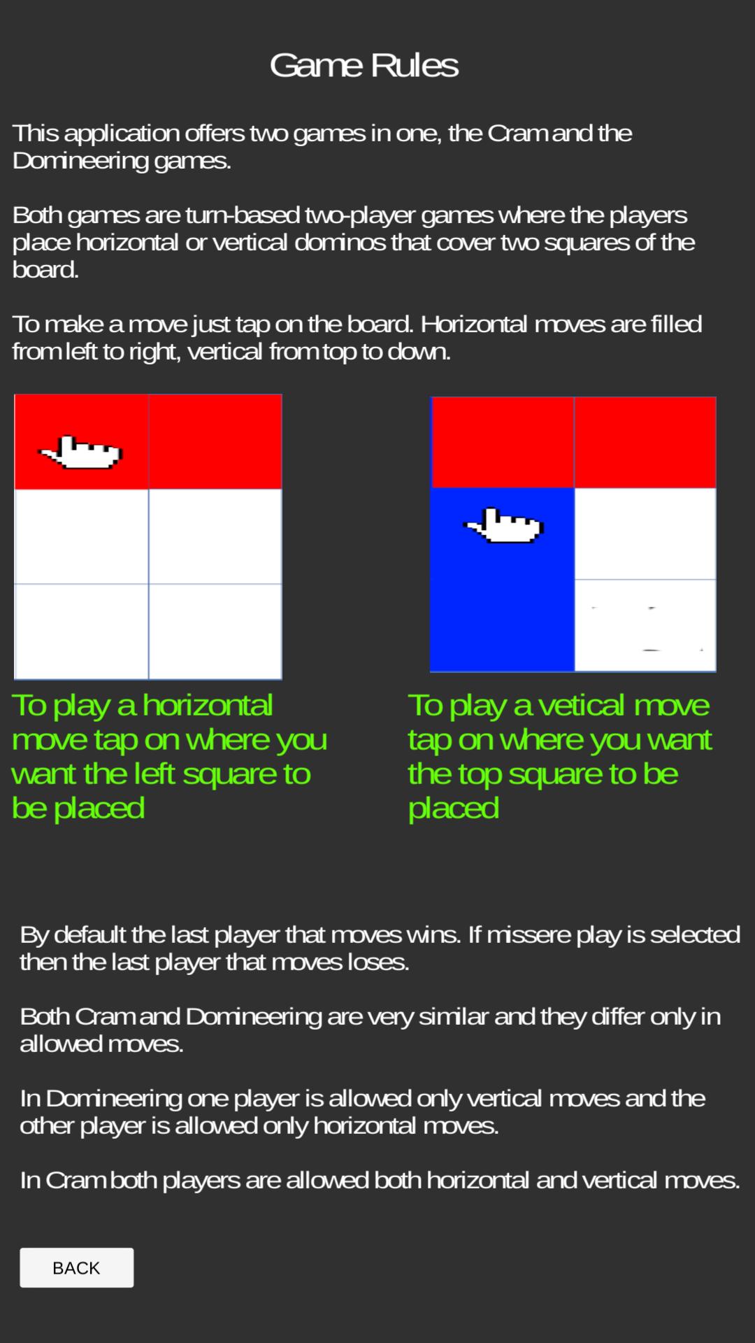 Tanto Cram como Dominineering son muy similares y difieren solo en los movimientos permitidos.