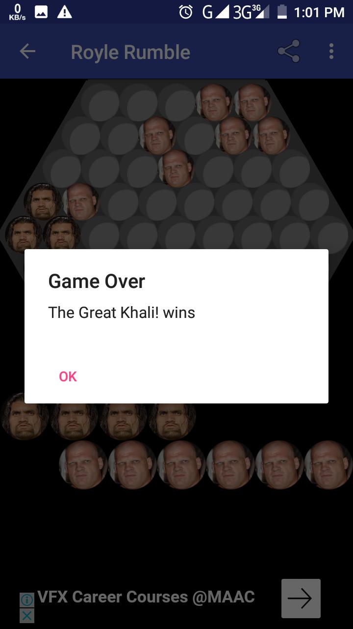 ¡Alterna entre los jugadores un movimiento a la vez, con el gran Khali! moviéndose primero. Para cada movimiento, un jugador mueve una línea de uno, dos o tres un espacio. Un jugador puede empujar a su oponente que está en un espacio adyacente a su cuenta con un movimiento en línea solamente. Solo pueden empujar si la línea de empuje tiene más jugadores que la línea empujada (tres pueden empujar dos o uno; dos pueden empujar uno). Los jugadores de los equipos deben ser empujados a un espacio abierto (es decir, no bloqueado por un jugador de cualquier color). El ganador es el primer jugador en ganar seis jugadores de equipo opuestos del oponente.