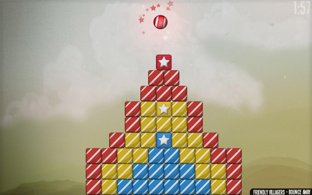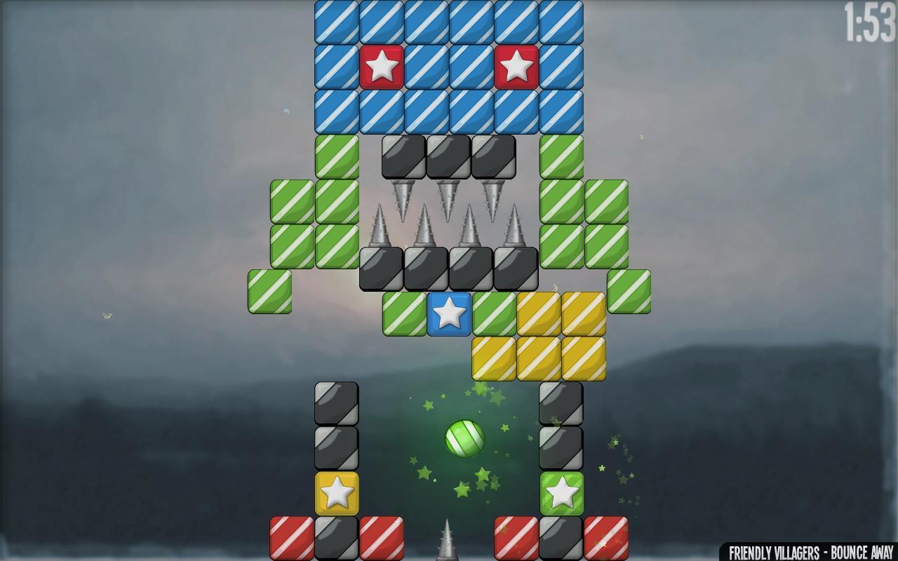 - Salta sobre los bloques de estrellas para cambiar el color de tu pelota.