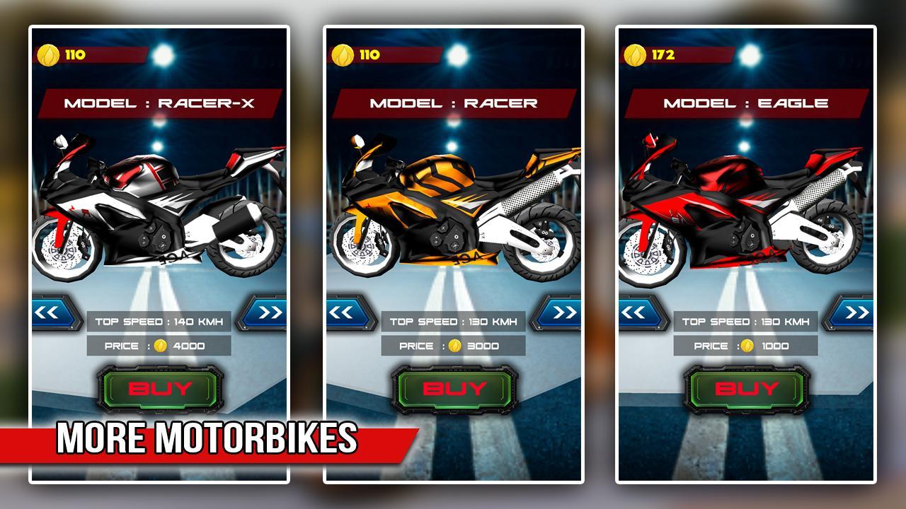 + El juego presenta un sonido realista: el sonido de las motocicletas de escape, el sonido de la bocina en el camino ...