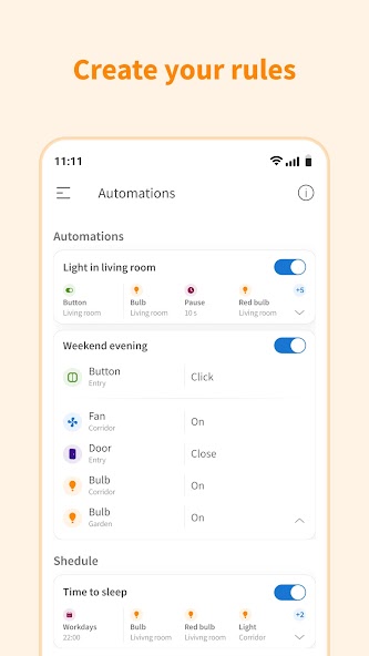 La configuration de l'automatisation n'a jamais été aussi simple. Personnalisez l'interaction entre tous les appareils dans votre maison: fonctionnalités supplémentaires pour les commutateurs (double-clic, longue presse), le climat le plus confortable, l'arrosage de la pelouse après le lever du soleil et beaucoup plus de fonctionnalités dans votre application mobile. Créez votre maison intelligente unique avec i3 home de i3 Engineering.