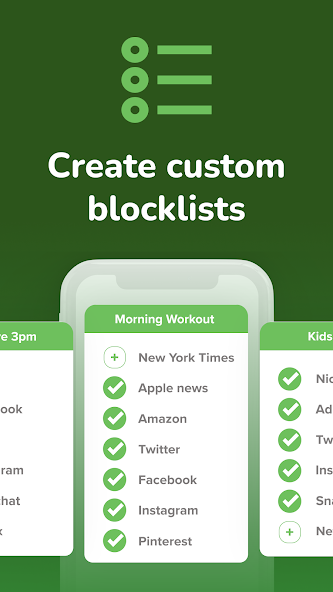 Sélectionnez les applications et sites Web distrayants et longs que vous souhaitez bloquer dans nos listes ou créer votre liste de bloc personnalisée. Bloquez autant de distractions que vous le souhaitez, chaque fois que vous le souhaitez, aussi longtemps que vous le souhaitez!