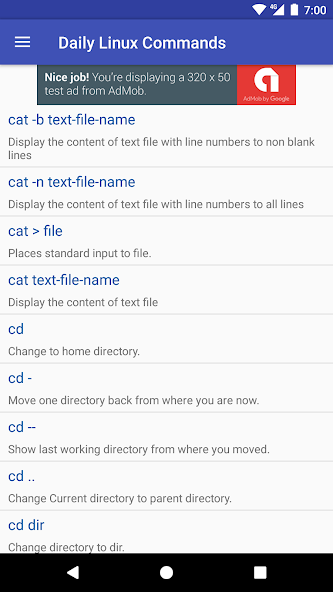 Les commandes sont divisées en catégories pour une navigation fluide et pour mieux comprendre la différence entre l'utilisation. Permet à l'utilisateur de rechercher dans toutes les commandes, ce qui facilite le passage à une commande particulière en un coup. Une fonctionnalité intéressante de la notification de l'utilisateur tous les jours avec une commande pour rester en contact avec Linux.