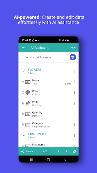 • Assistant AI pour la création de bases de données et l'écriture d'entrée à partir d'invites ou de photos.