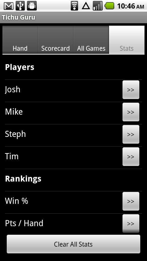 Tichu Guru est pour garder le score dans vos jeux Tichu réels. Vous voulez prouver à votre partenaire que vous faites plus de tichus qu'eux? Les statistiques de Tichu Guru vous donneront des droits de vantardise.