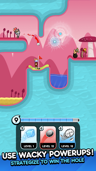 Jouez sur certains des cours les plus créatifs jamais imaginés. Personnalisez votre golfeur et emballez votre sac avec toutes sortes de power-ups comme des balles collantes, des grenades, des lasers et plus encore.
