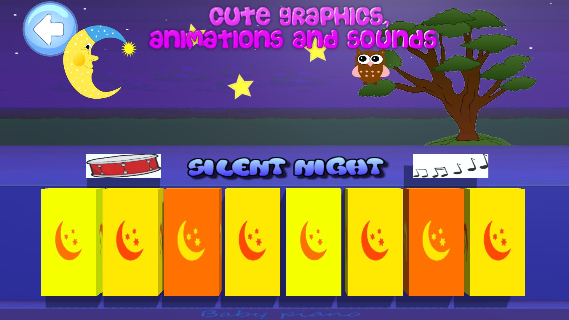 Piano bébé coloré sans publicité pour enfants. Avec des images mignonnes et un effet sonore.