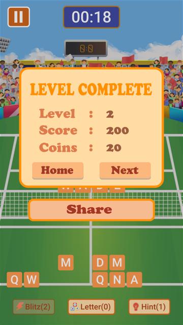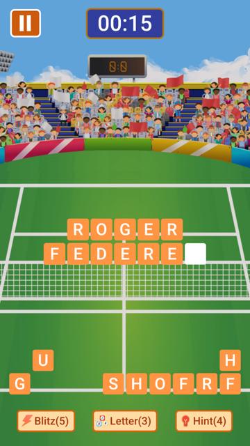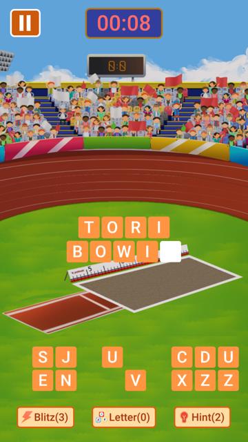 Jouer et vous défier les compétences de vocabulaire sur ce jeu de puzzle de mots, vous pouvez vous tester dans différents puzzles de sport avec des mots de sports comme le football, le golf, le football américain, le basket-ball, l'athlétisme, la boxe, le cricket, le tennis, la Formule1 et le baseball. Ce jeu de sports de supposition doit offrir de nombreux énigmes sportives tout en vous donnant la chance de progresser à différents niveaux. Au fur et à mesure que vous progressez, le jeu de mots devient plus difficile et vous devez penser plus vite afin de deviner les bons mots et de gagner les scores les plus élevés.