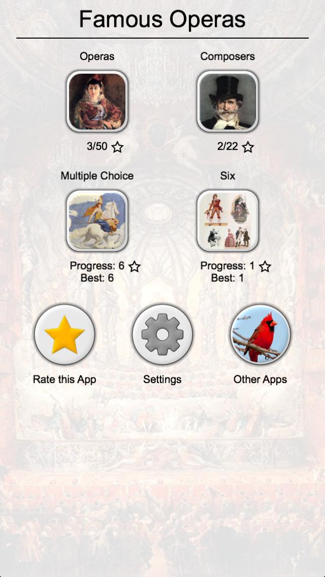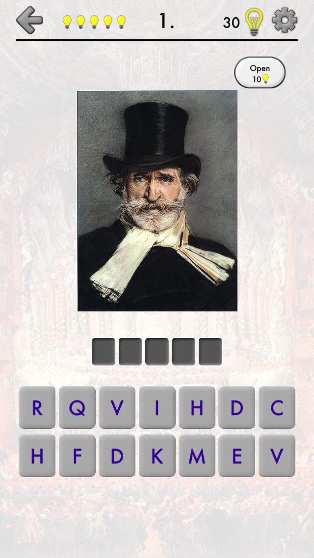 Pour tous les fans d'opéra! Démontrez votre connaissance des 50 opéras les plus réalisés par les compositeurs d'opéra les plus importants. L'application a 2 niveaux de jeu:
