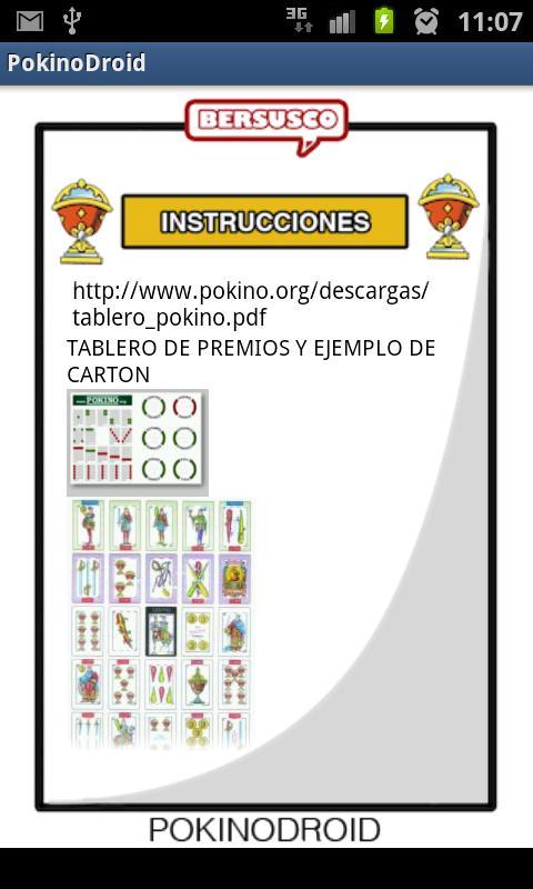 Découvrez Pokino, le jeu nouveau et addictif qui vous rappellera le bingo, dans lequel au lieu des boules de billes sont supprimées. Il s'agit d'une adaptation du PO-K-NO® provient du poker + keno (bingo en anglais). Jouez avec des amis, votre famille, dans le rocher ou dans votre bar. Téléchargez les cartes et les règles sur le site officiel de Pokino www.pokino.org ou nos cartons personnalisés de www.bersusco.com et vous n'aurez pas besoin de cartes puisque Pokino les chantera à haute voix dans votre propre mobile, afin que tout le monde puisse jouer et essayer de faire "Pokino" avant quelqu'un d'autre. Jeu !!