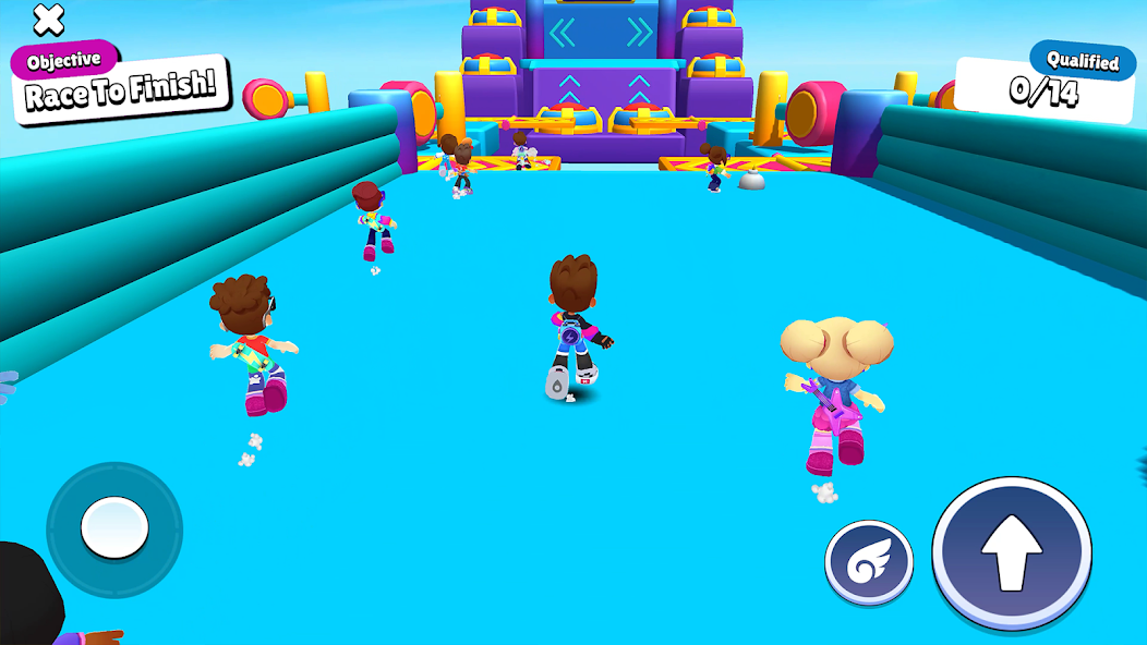 Personnalisez votre avatar Kooply Party Champs avec une vaste sélection de cosmétiques sympas. Naviguez à travers des niveaux passionnants équipés de power-ups passionnants - des bombes à déploiement, des planches à roulettes, des casseroles de cuisson ou de la montée en flèche avec des jetpacks pour surpasser vos adversaires.