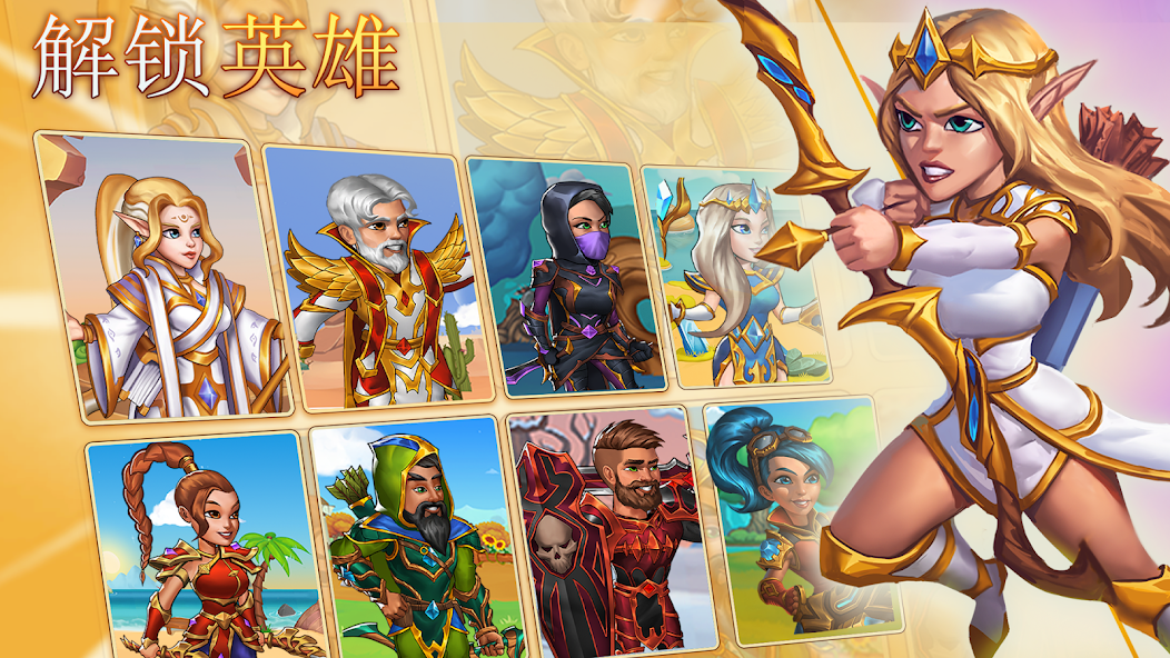 Construisez votre liste d'équipe à partir de sorciers, de chevaliers et d'archers: découvrez et débloquez de nouveaux héros légendaires tout au long du voyage aventureux, des compétences et des niveaux de niveau progressifs, et envoyez-les à AFK Battle!