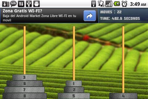 The classic game of Hanoi Towers, you can play time trial mode with various levels of difficulty from the easiest with infinite time to make your move until the more difficult where you must do more than 2 moves per second.