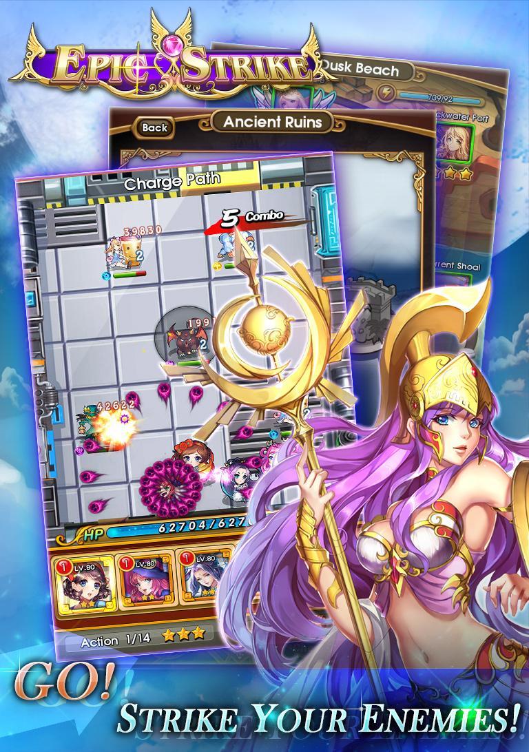 The most strategic, interactive, Pinball RPG is coming! Epic Strike is the perfect free-to play for brilliant strikers. Heroes from different spaces get together in a parallel world. Use one finger to pull, sling, and bump your heroes to trigger their great skills. Collect dozens legend heroes with gorgeous skills, and strategically form your epic team to WIN the battle. A fantastic adventure starts now!