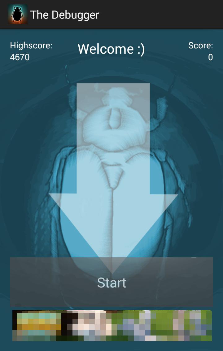 The target of the app is to delete every appearing two (the bug) in the binary-code, while new lines are spawning faster and faster. Through this concept you can prove and train your reaction skills and break your highscore. If this is no callenge for a programmer like you are, there is also a "storm" mode, with fast spawning numbers, letters and symbols. And of course you just must examine also the 2's. The difficulty and speed of this mode lets every racing gaming look old fashioned.
