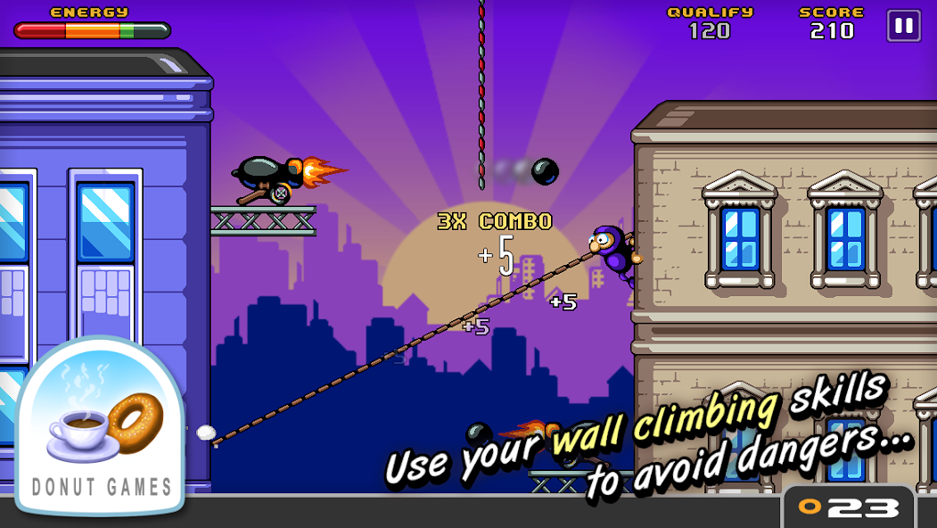 Join Francois, the clumsy ninja, in a wall climbing, roof jumping adventure