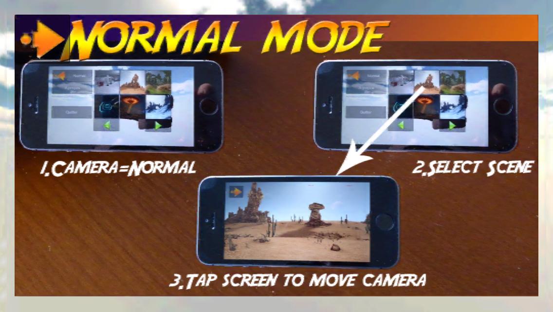 Look down during a few seconds or use the Android fully supported magnet toggle on the side of the headset to start/stop moving into current scene or to load next level (4 configurable VR moving modes are now possible with or without magnet toggle, speed, player's height or eyes distance is also configurable).