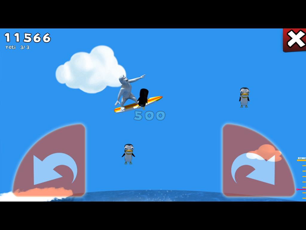 Hit pengus in-air to get score points. Try to get more than one per jump. This will multiply the value.