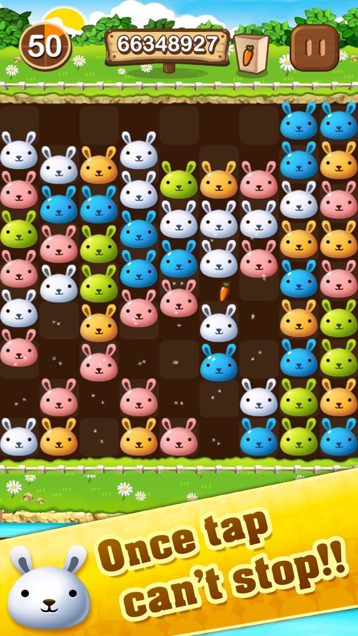 Tap, click and match 3 game. Like candy, popping star, with bunny and rabbit.