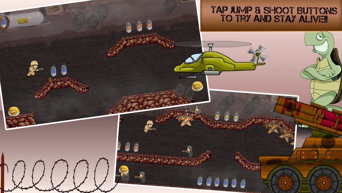 Make your way through the trenches avoiding deadly objects and ruthless enemy, these guy don't ask questions.