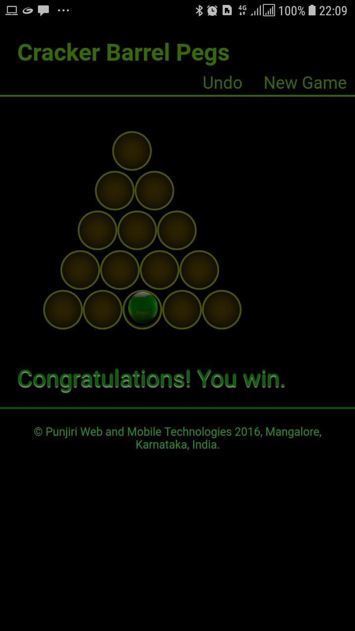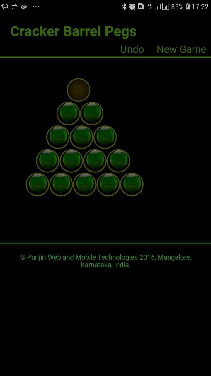 The Cracker Barrel Peg Game involves moving pegs on a triangular board with holes. At the start of the game, the entire board is filled with pegs except for one corner hole. A valid move is to jump a peg over an adjacent peg into an empty hole two positions away. The move can be made in any direction. The peg that is jumped over is then removed. The game objective is to empty the entire board except for one solitary peg.
