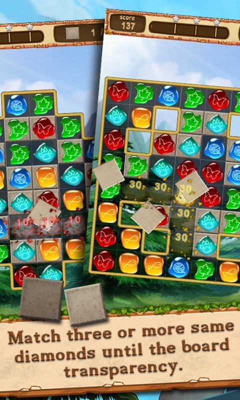 - Match three or more same diamonds until the board transparency.