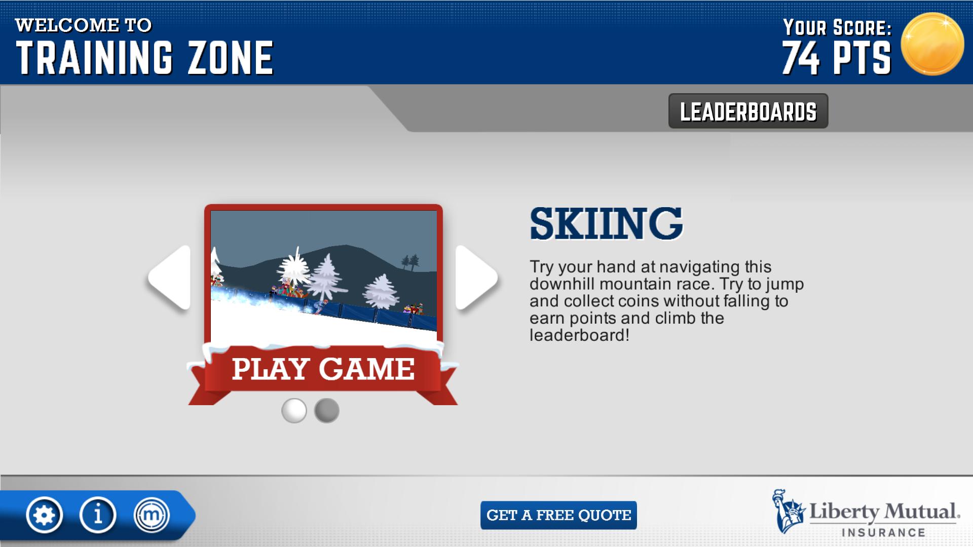 With Liberty Mutual TrainingZone, earn coins and earn upgrades to your gear as you compete in different events to create your own fun sports moments!