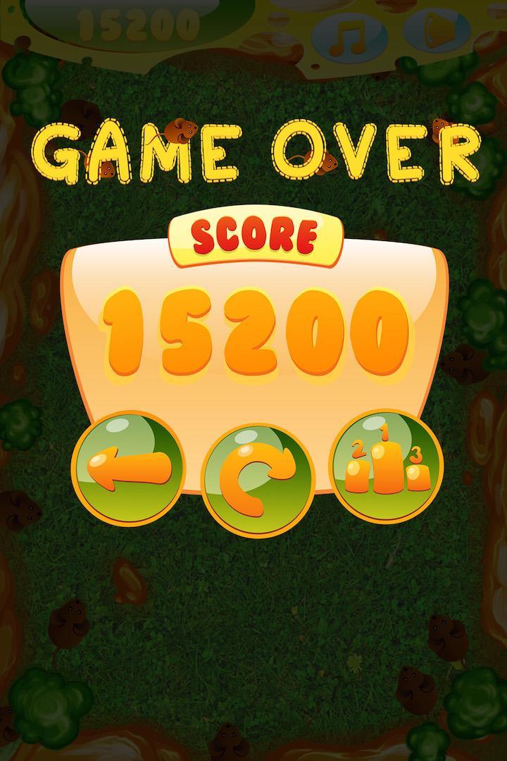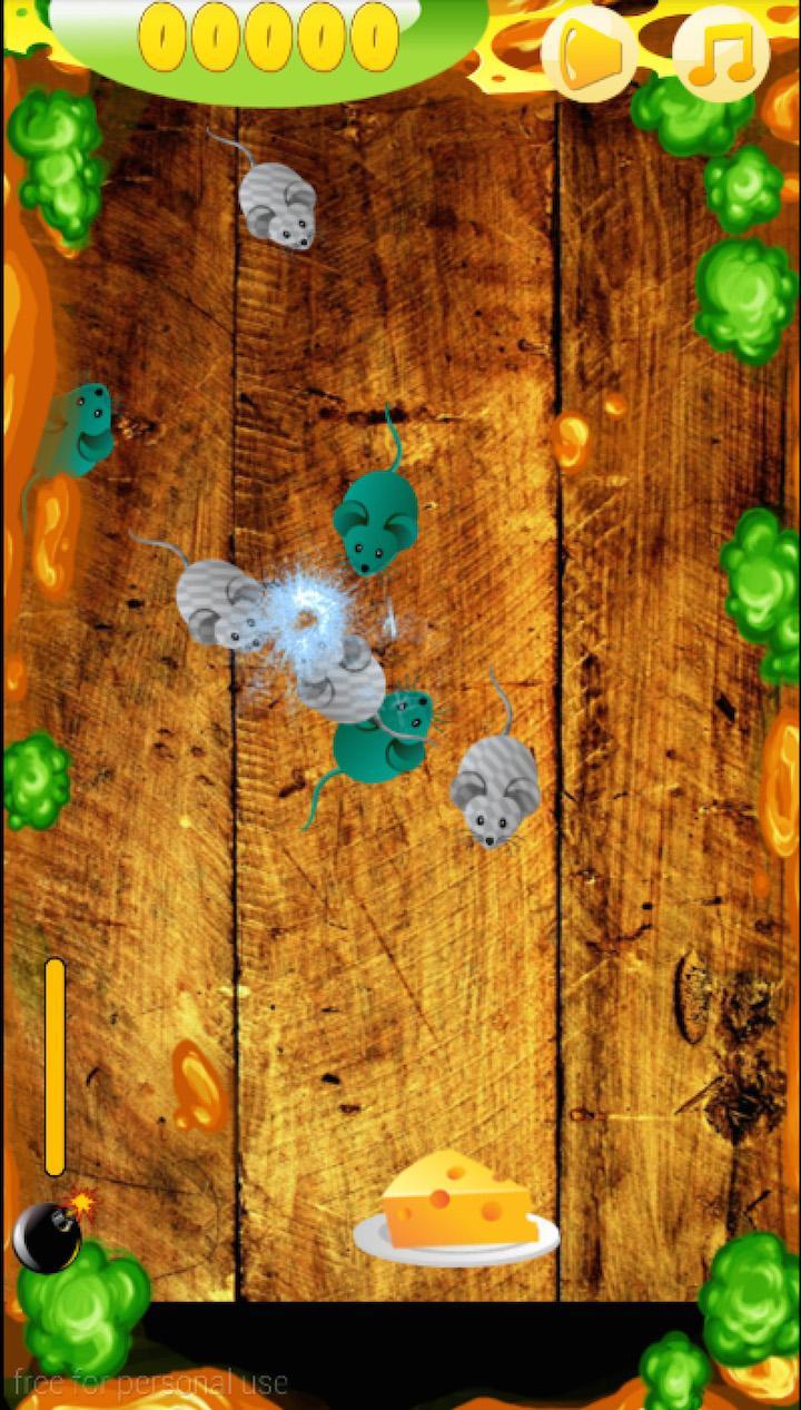 A large group of mice of unknown origin invaded your farm. Being a cheese farm owner, it's time to stand and defend your home. Now, only you can stop these greedy mice. Is your reaction fast enough? Fast tapping with your fingers, beating, grinding and repelling these mice. To destroy a cluster by wisely making the best use of your powerful tools, such as bomb, fire and lightning.