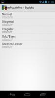 * Sudoku - Normal, Diagonal, Irregular, Odd/Even and Greater/Lesser. 4 size options and 8 levels of difficulty