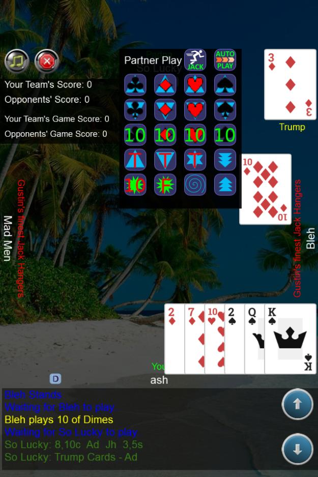 Play All Fours against the computer; call trump, kick a six, bring ten and best of all, hang a jack!