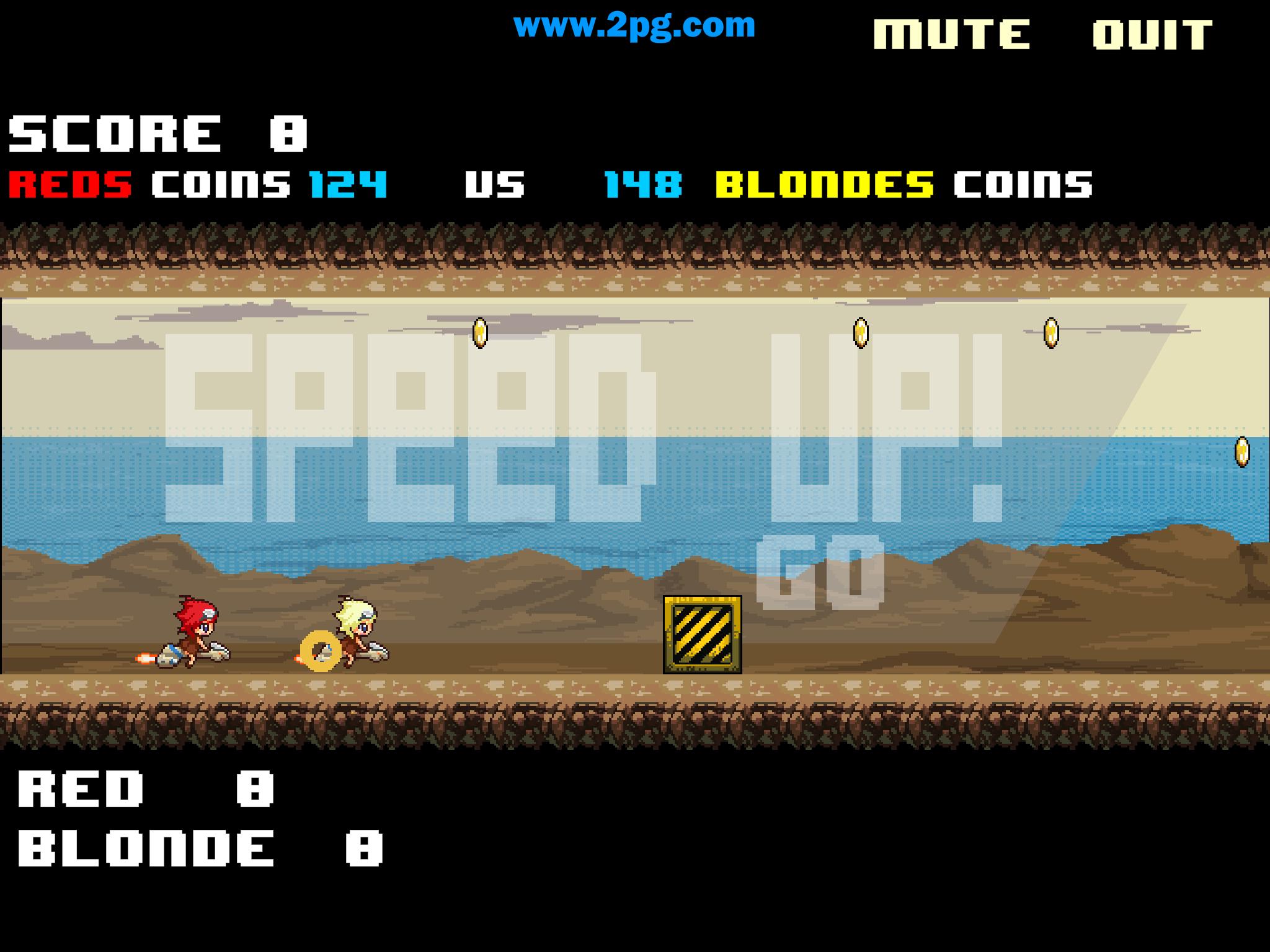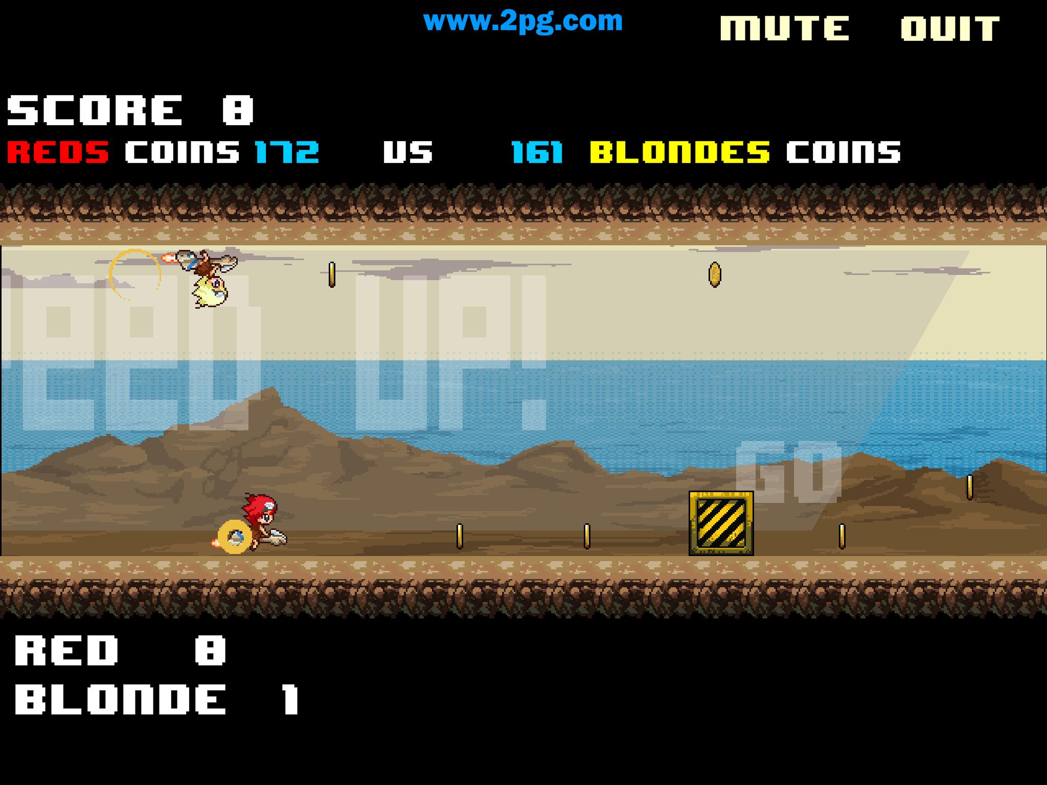 Collect coins, dodge objects, out last your opponent.
