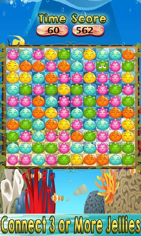 Tap on any 3 or more connected identical Sweet candy Jelly to remove them. The more underwater candy Jellies you connect,