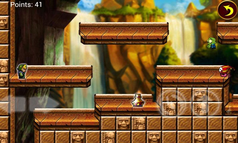 Collect bottle to unlock new characters and collect more points. The game consists 8 different characters each have its own weapon. The weapon’s power can be increased by upgrading the character so that it can kill enemy faster.