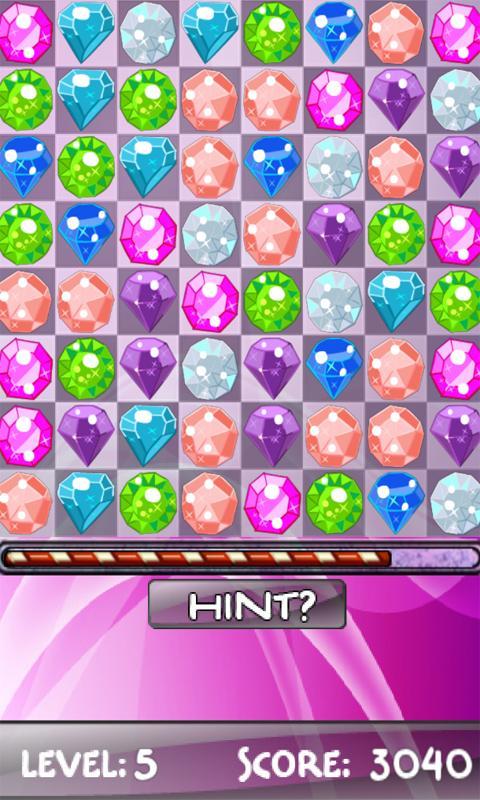 - Classic Mode: Eliminate a certain number of jewels each level. (10 Hints Provided)