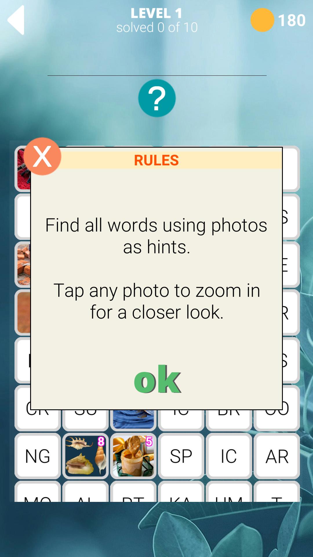 Guess the hidden word using the photo for the clue, the words are divided into fragments, the riddles are of different complexity, from easy words, which take seconds to solve complex words, which will take a lot of time to resolve.