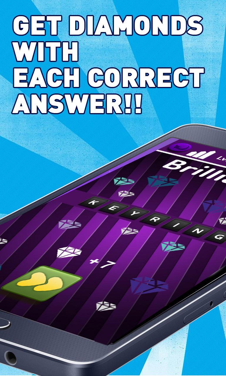 With every correct answer you gain diamonds; you can spend them to get the answer or clues in the form of a letter that's contained in the answer.