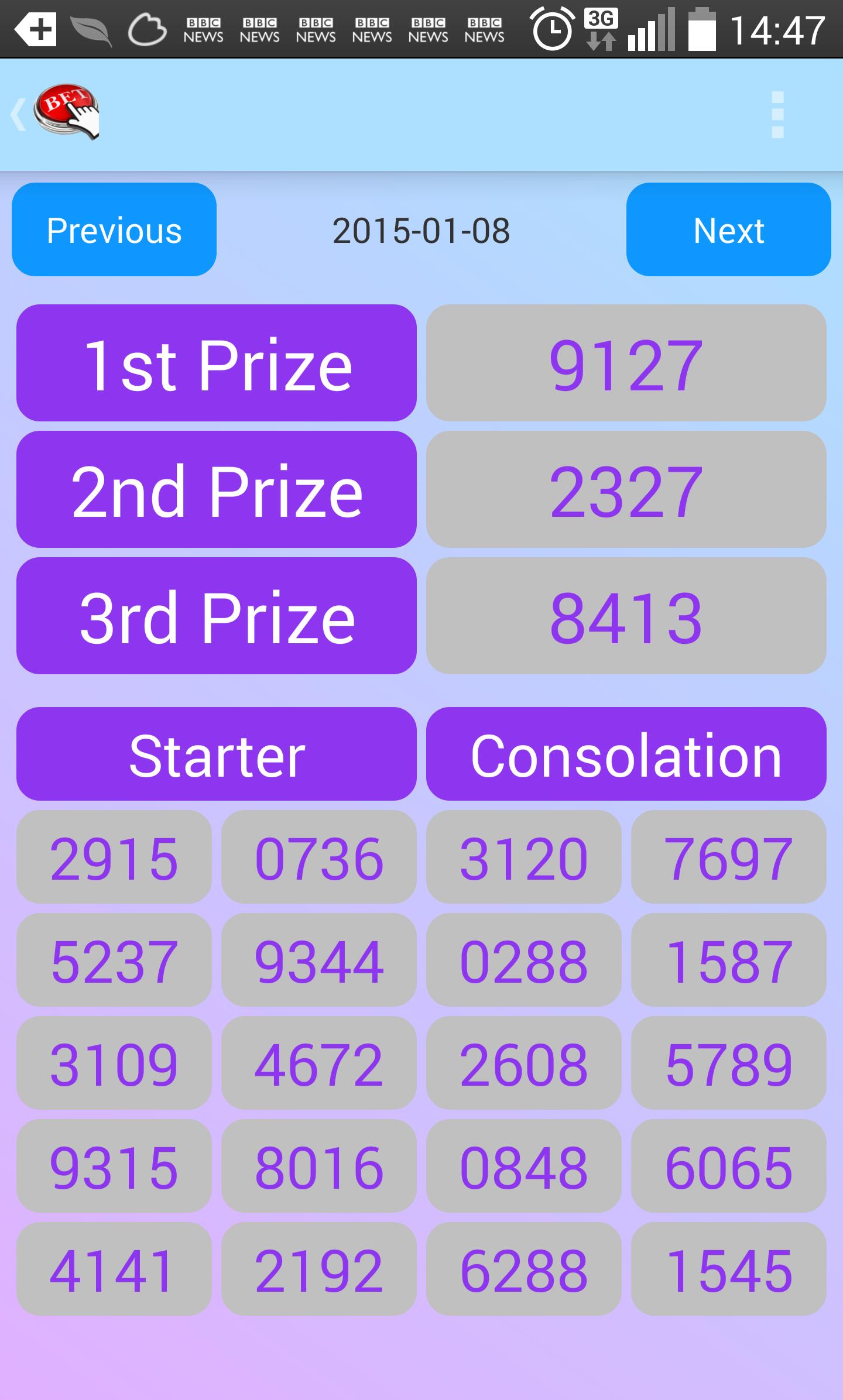 Simulate slot machine and Singapore lottery games, 4D and Toto, following the same rules as they are played in Singapore. You can use this to try your luck everyday without money involved! Also you can get random numbers