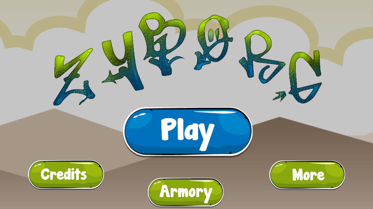 This project was my first game. In this game you have many types of enemies: they can fly, run, creep and fight so you cannot get close to them. Zyborg has a super gun to kill enemies and he can collect special ammunition for it. The idea is to collect more money to buy more ammunition per collect from store. At the same time you can upgrade your magnet and buy more shields to protect your Zyborg.