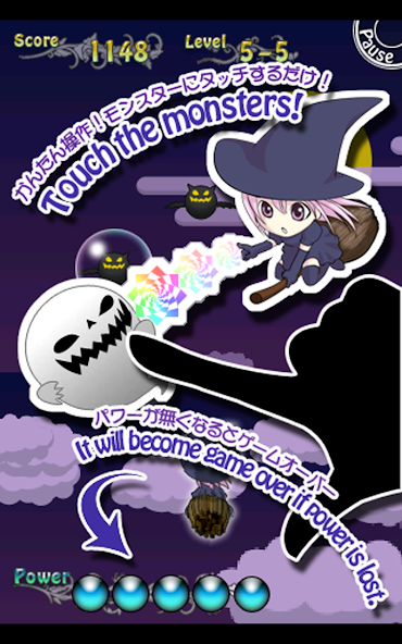The operation is simple enough to touch the monsters. Killing the enemy, the power is restored. When mistakes or over time, reduce the power. When the power is zero, the game is over. Exceeds the level 10-10, the game is clear.