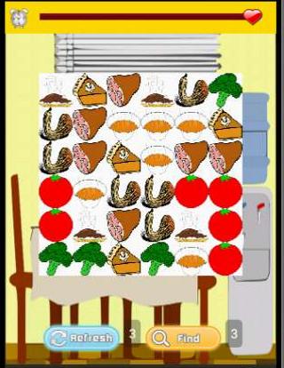 Another great feature of this Thanksgiving Food Fight Free Game for kids and everyone else that makes it even more awesome than just a matching game - you must find the icons that link together in some way! When you make a linked match the Thanksgiving Food Fight will show you the link. You also get some help along the way. You can use the REFRESH button 3 times, this mixes up the game cards so it is easier to find linking matches. You can also use the FIND button 3 times, and this will find the matching links for you.
