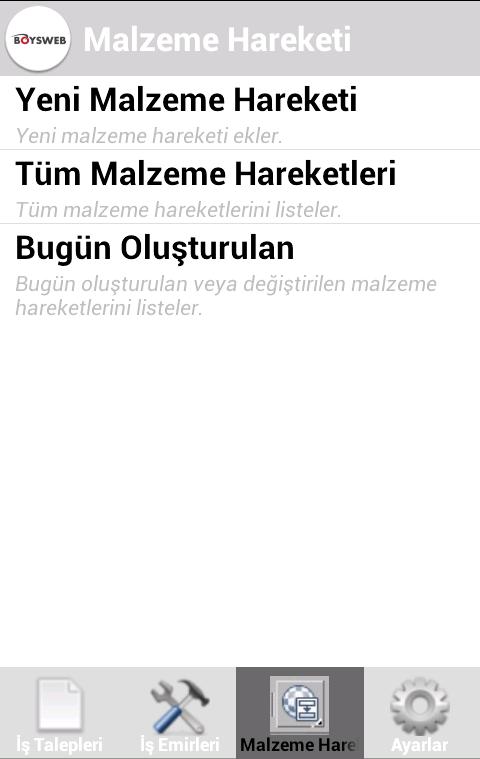 Dengan aplikasi ini, Anda akan dapat menggunakan permintaan pekerjaan dan fungsi perintah kerja, yang merupakan salah satu fungsi utama dari program BoysWeb, pada perangkat berbasis Android.