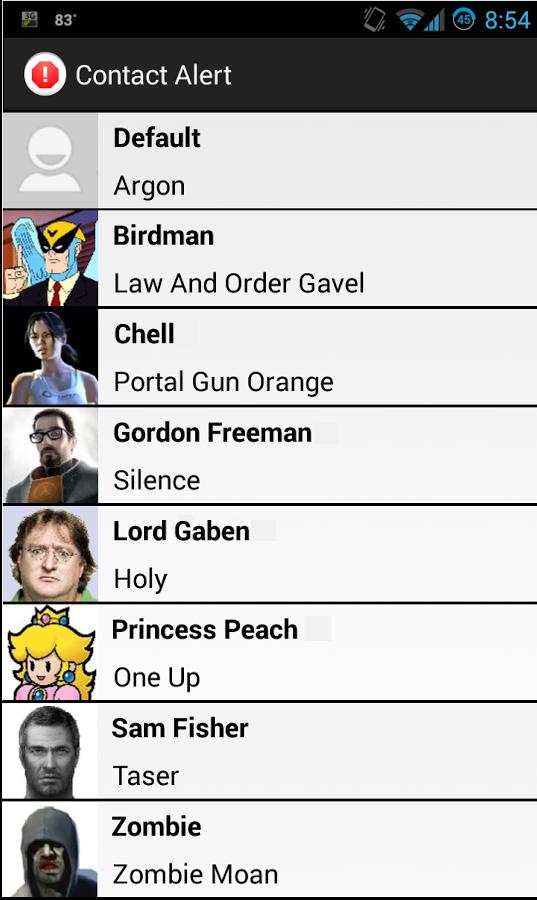 - Muat Contact Alert , klik kontak yang Anda inginkan untuk memiliki suara pemberitahuan khusus, dan pilih pemberitahuan