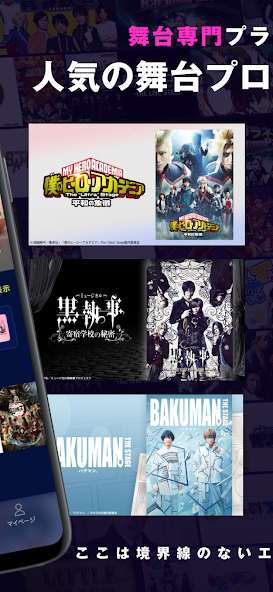 Anda dapat menikmati video panggung populer dan program eksklusif terbatas yang hanya dapat dilihat di platform ini kapan saja, di mana saja, dan sebanyak yang Anda suka! Anda juga dapat menonton pertunjukan live stream yang dipentaskan secara real time.