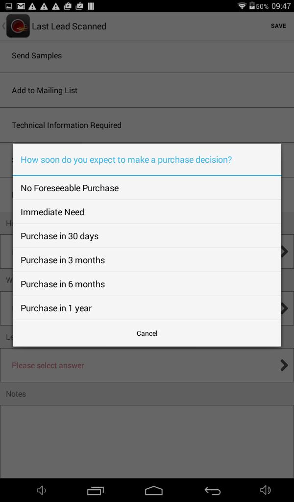 Sistem manajemen pengambilan timah yang efektif namun mudah digunakan, memamerkan, memungkinkan Anda memaksimalkan peluang bisnis untuk peserta pameran Anda di pameran dagang dan acara. Solusi Showleads memasangkan perangkat Android Anda dengan kemampuan pemindaian inovatif untuk menghasilkan alat generasi pemimpin yang komprehensif dan canggih yang dikemas dengan fitur untuk meningkatkan proses penjualan di pameran dagang atau lantai acara.