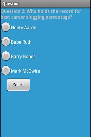 Uji pengetahuan Anda tentang sejarah bisbol MLB, statistik, dan trivia. Aplikasi ini dalam format kuis, dengan opsi untuk melakukan 10, 25, atau 100 pertanyaan dari database lebih dari 400 pertanyaan, dan pilihan tingkat kesulitan yang mudah atau standar. Pertanyaan termasuk rekor World Series, karier, permainan, dan rekaman musim, termasuk memukul, pitching, fielding, dan pengelolaan. Juga beberapa pertanyaan trivia, seperti nama panggilan pemain.
