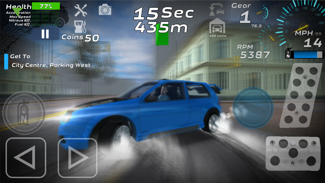Dapatkan koin untuk meningkatkan, memperbaiki waktu beli mobil Anda di garasi dalam perjalanan dan dengan cepat membeli lebih banyak bahan bakar dan nitro dari stasiun bahan bakar.